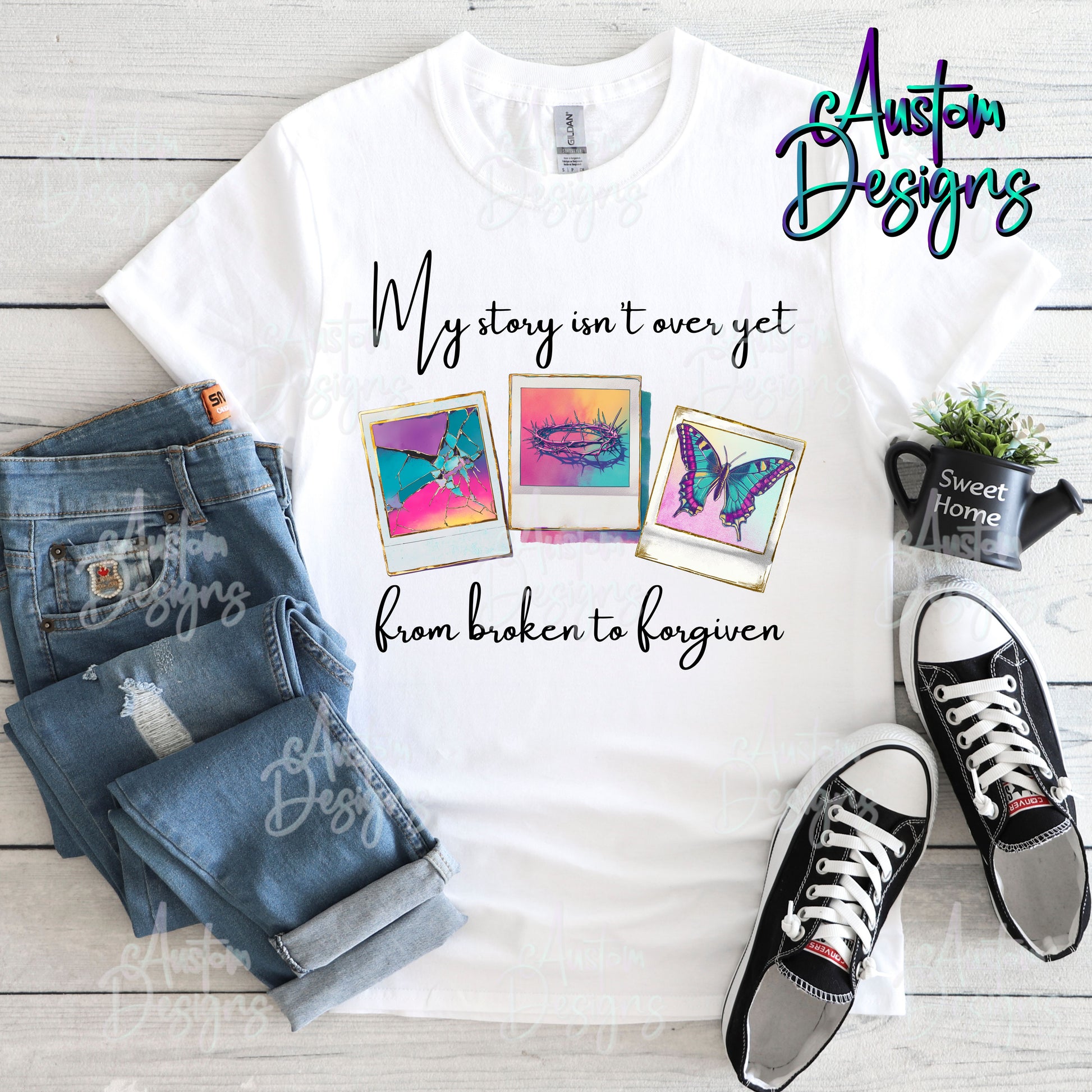 When you find Jesus and accept Him as your Savior your story truly begins. You can go from broken to victory, turn your mess into a message and tell everyone your story with this beautiful and colorful design.